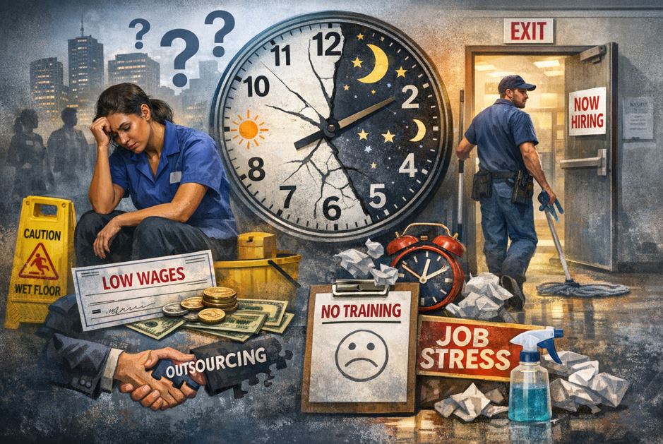 Outsourcing/subcontracting gyakran együtt jár gyengébb munkafeltételekkel és instabilitással; kutatások a takarítási alvállalkozásos modellben is vizsgálják ezt.
