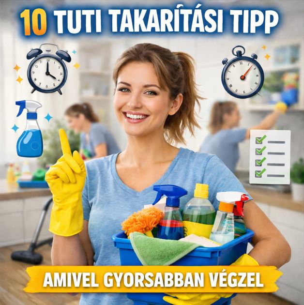 Ha időt akarsz nyerni, állíts be 25 perces "fókusz blokkokat" (Pomodoro): 25 perc munka, 5 perc szünet. Meglepően jól tartja a tempót. A végén mindig legyen egy 10 perces "finis": tükrök, kilincsek, kapcsolók, kukák külső fertőtlenítése. Ezek adják a "wow" érzetet.